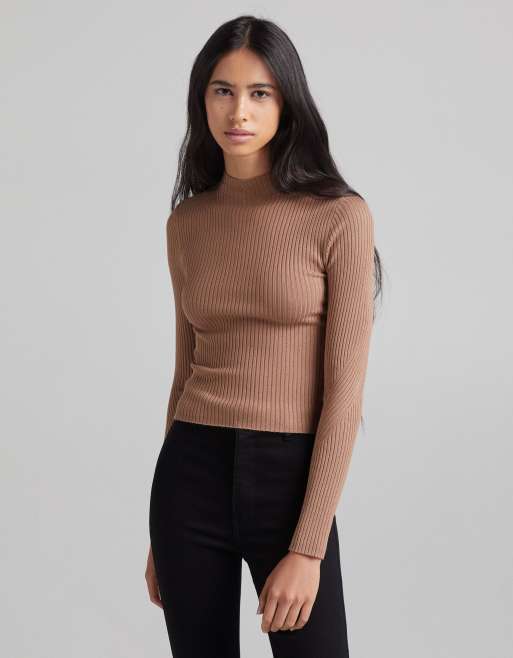 Bershka ribbed high neck neck jumper in brown Very well made.