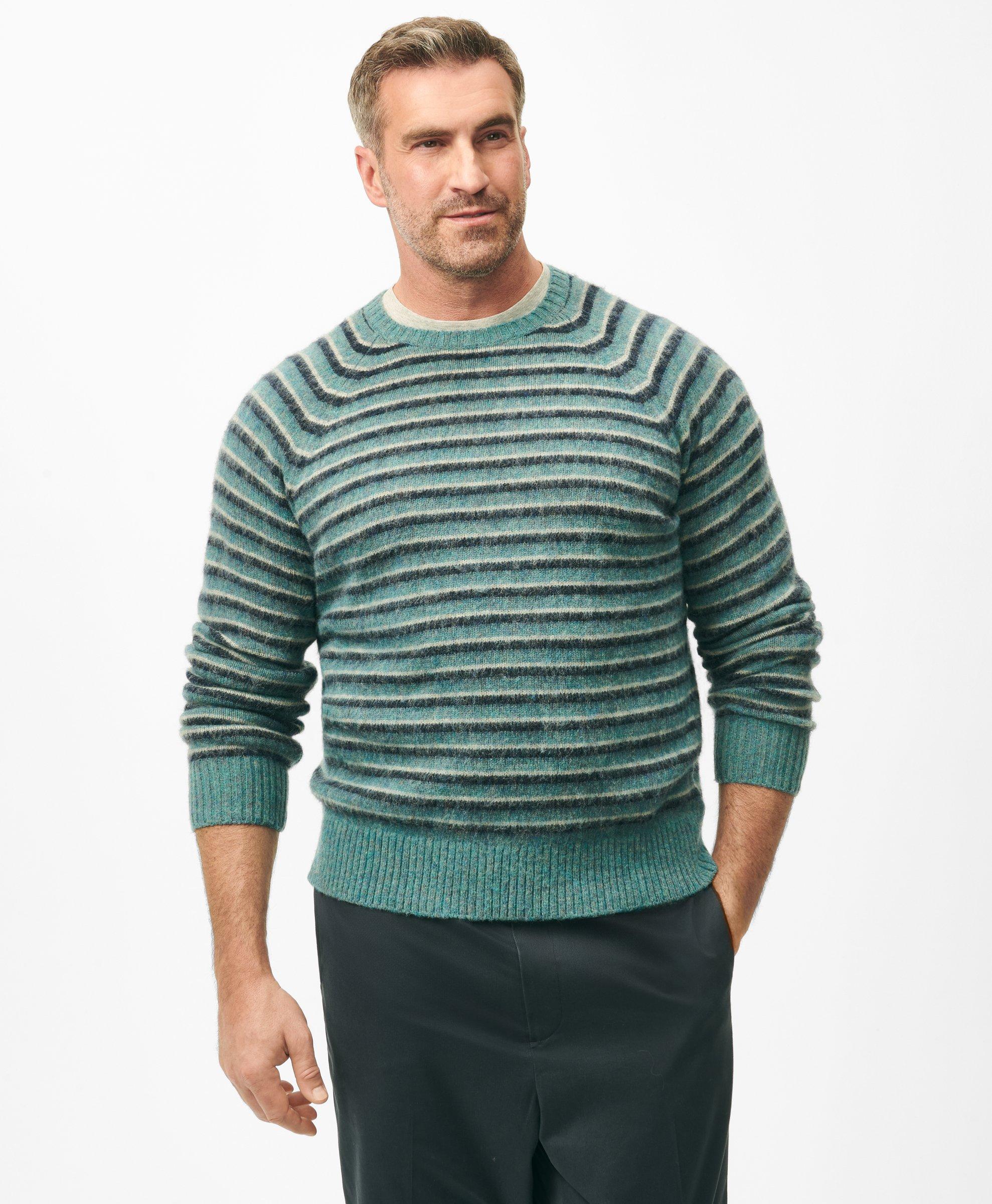 Big Tall Crewneck Sweater in Striped Brush Wool Very well made.