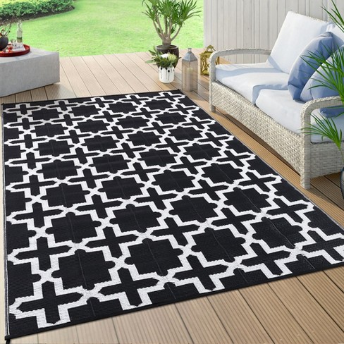 Plastic Straw Rug Outdoor Rug Waterproof Reversible Modern Area Rug Outdoor Patio Rug 5 x8 Black White Very well made.
