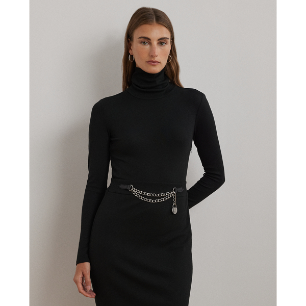 Chain Trim Rib Knit Turtleneck Dress Very well made.