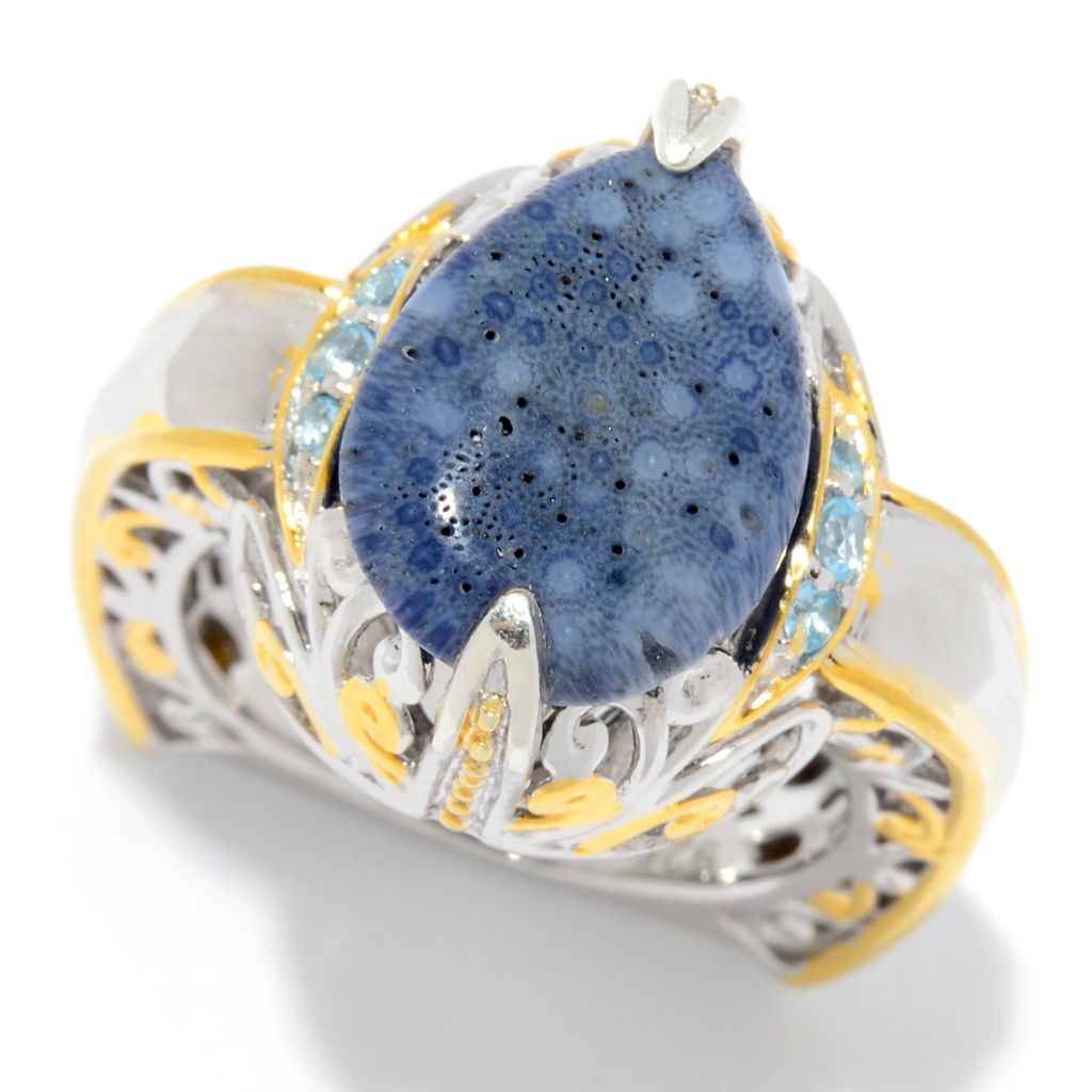 Gems en Vogue 14 x 10mm Blue Coral Swiss Blue Topaz Pear Shaped Ring ShopHQ Very well made.