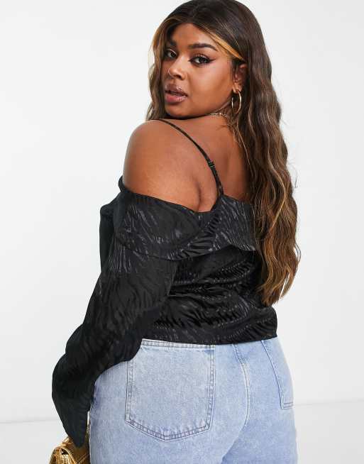 ASOS DESIGN Curve Blusa in jacquard nera tigrata con spalle scoperte ASOS Very well made.