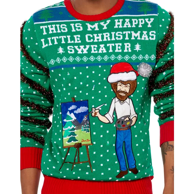 Happy Little Christmas Bob Ross Ugly Christmas Sweater Very well made.