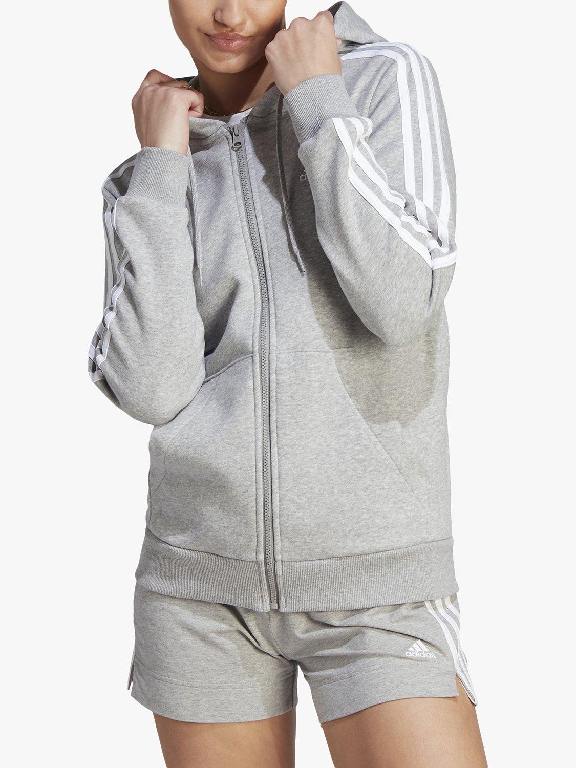 adidas Essentials 3 Stripes Full Zip Fleece Hoodie Grey Heather White Very well made.