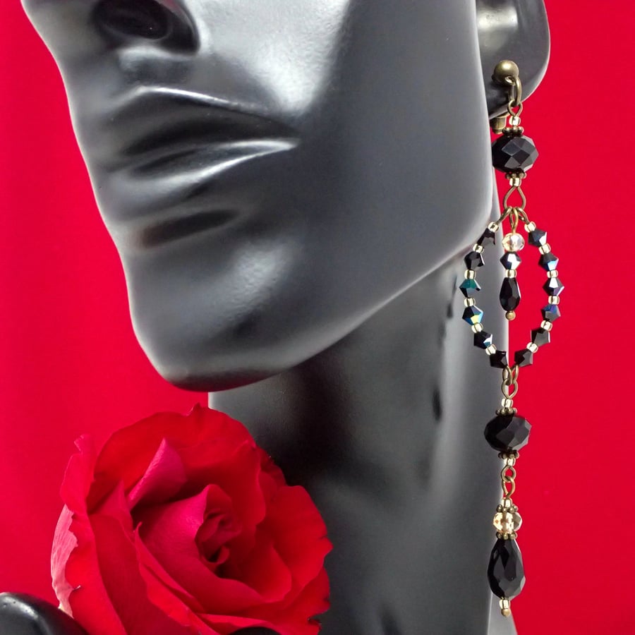 Long Black Dangle Statement Earrings Bohemian Folksy Very well made.