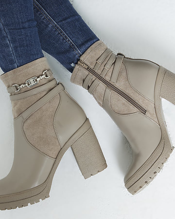 Beige hardware strap heeled boots River Island Very well made.