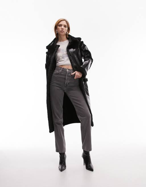 Topshop long line borg aviator coat with patch pockets in black ClassicfuncenterShops Very well made.