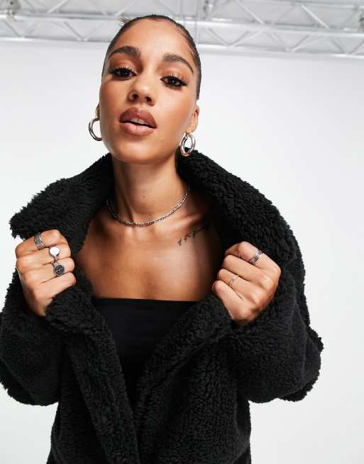 TOPSHOP Oversized Aviator Borg Coat in Black Lyst Very well made.