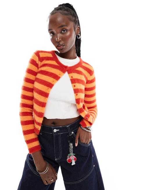 Daisy Street fluffy knit micro cardigan in brick orange stripe ASOS Very well made.