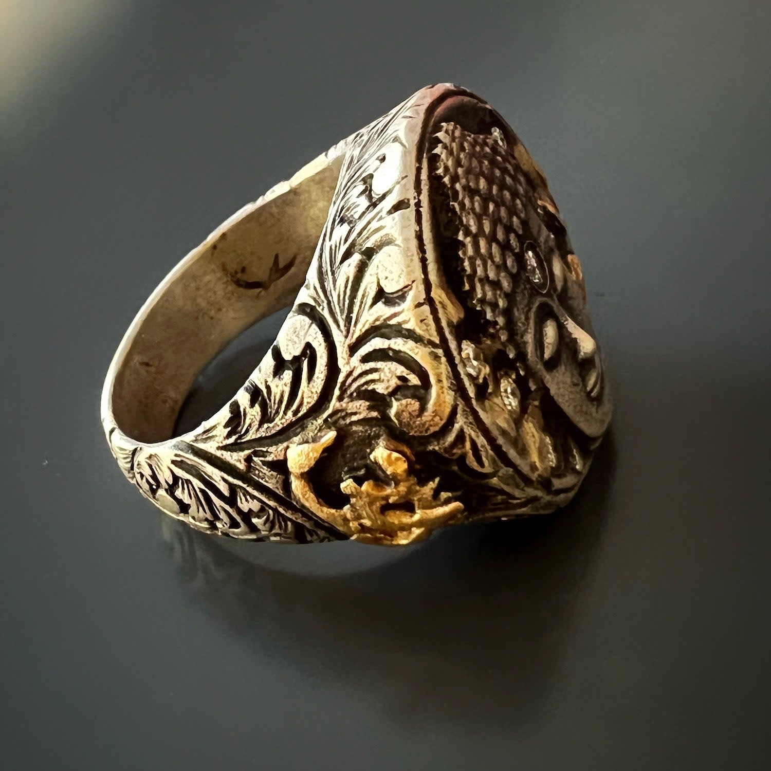 Unique Gold And Diamond Buddha Ring Silver Ebru Jewelry Wolf Badger Very well made.