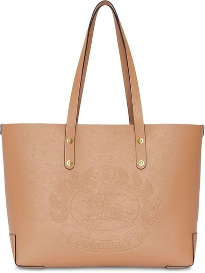 Burberry Small Embossed Crest Leather Tote Beige In Marron beige ModeSens GB Very well made.
