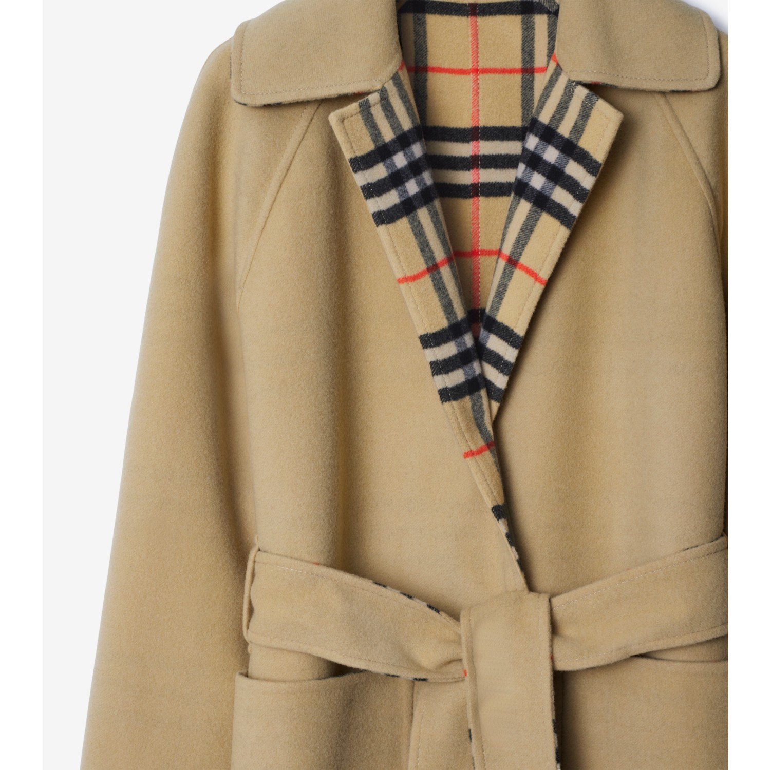 Long Reversible Check Wool Car Coat in Flax Women Burberry Official Very well made.