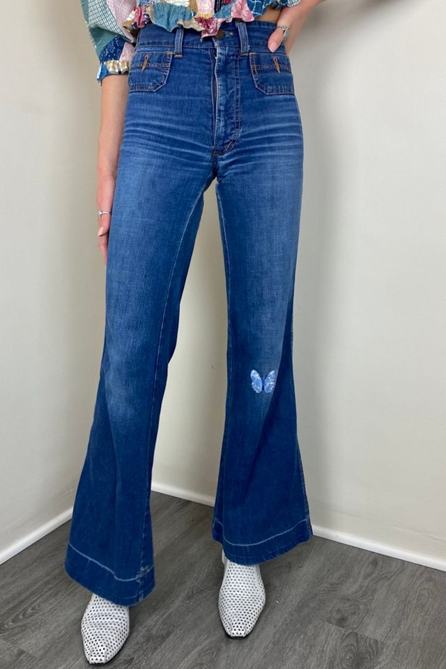Vintage 1970s Flared Butterfly Embroidered Jeans Selected by Picky Jane Free People Very well made.