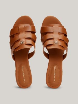 Rope Block Heel Cage Leather Sandals Brown Tommy Hilfiger Very well made.