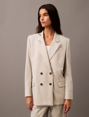 Double Breasted Wool Gabardine Blend Blazer Calvin Klein Very well made.