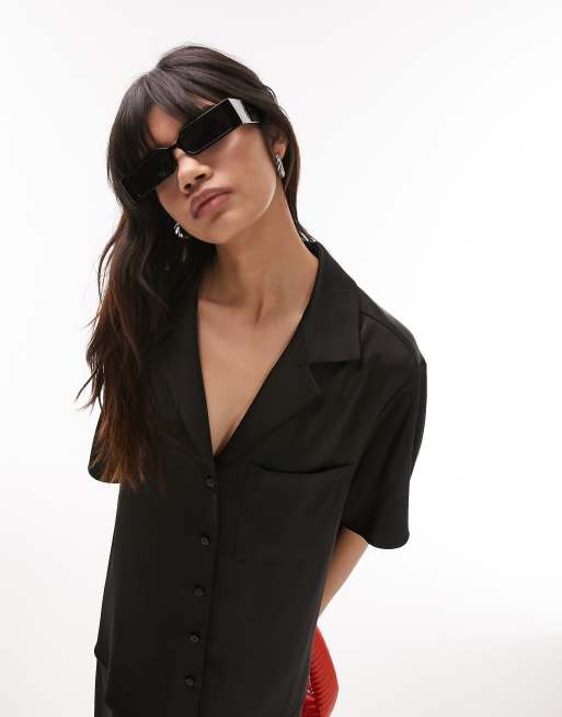 Topshop Camicia a maniche corte nera in raso ASOS Very well made.