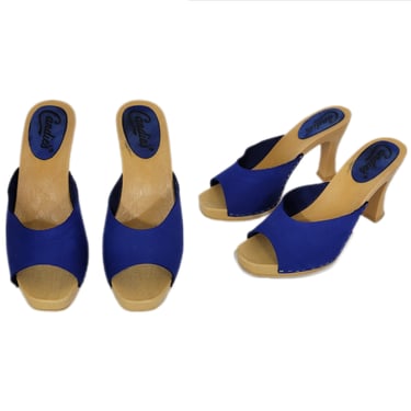 80s Candies shoes 1980s mules vintage slides navy blue sandals Black Label Vintage Tacoma WA Very well made.