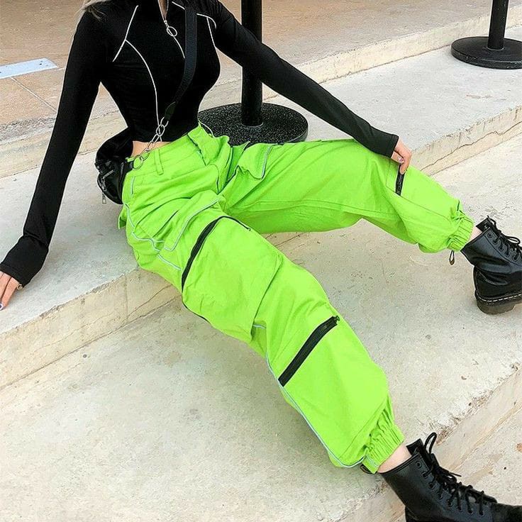 Neon Lime Green Cargo Trousers Trousers Femme Luxe Very well made.