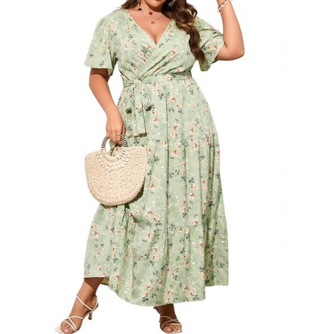 Missky Women Plus Size Wrap Dress High Waist Short Sleeve Ruffle Casual Summer Maxi Dresses With Belt fruit Green Print 3xl Target Very well made.