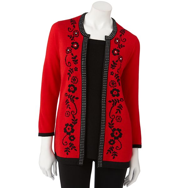 Women s Cathy Daniels Floral Embellished Mock Layer Sweater Very well made.