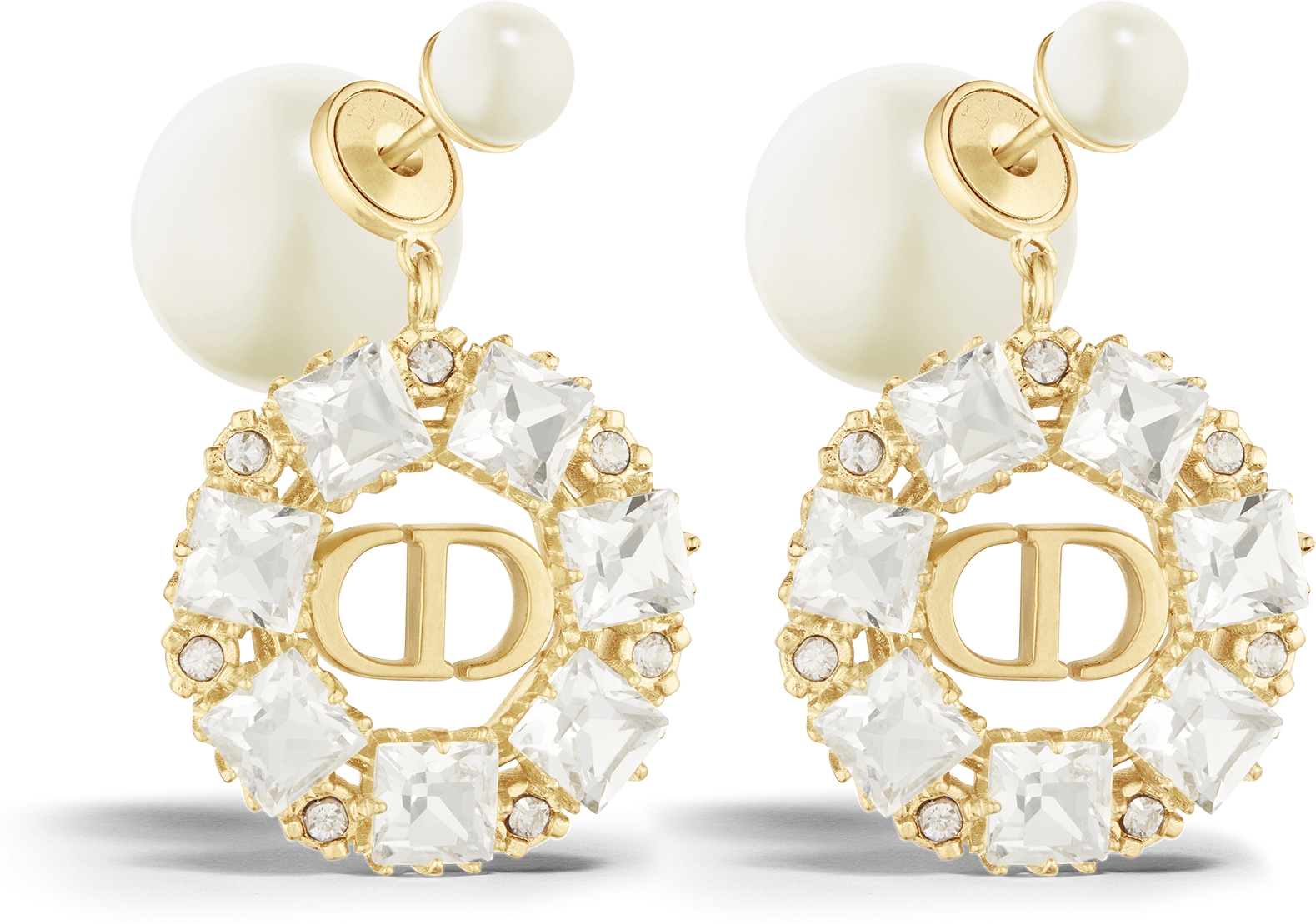 DIOR Tribales Earrings Gold Finish Metal With White Resin Pearls And Silver Tone Crystals Women Jewelry Very well made.