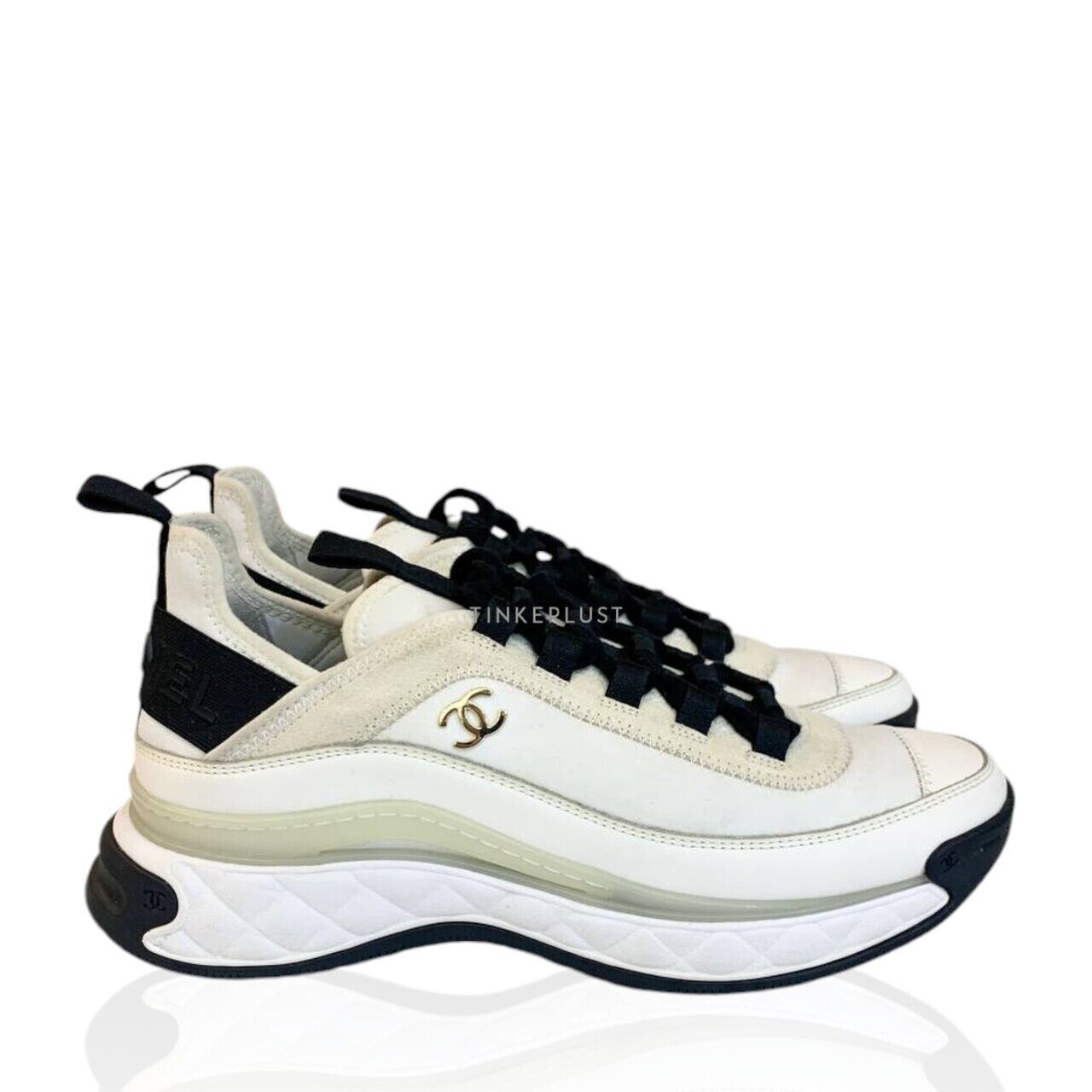 sepatu sneakers Chanel Classic in White Velvet Calfskin Sneakers Tinkerlust Very well made.
