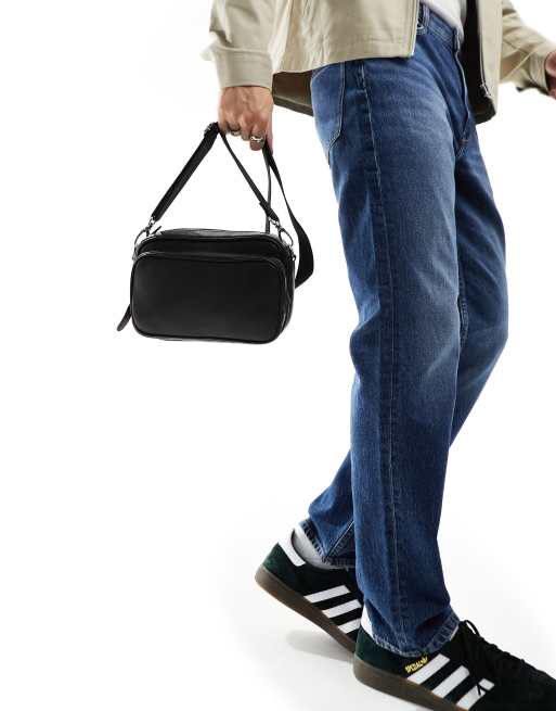 ASOS DESIGN faux leather cross body camera bag in black with contrast stitch ASOS Very well made.