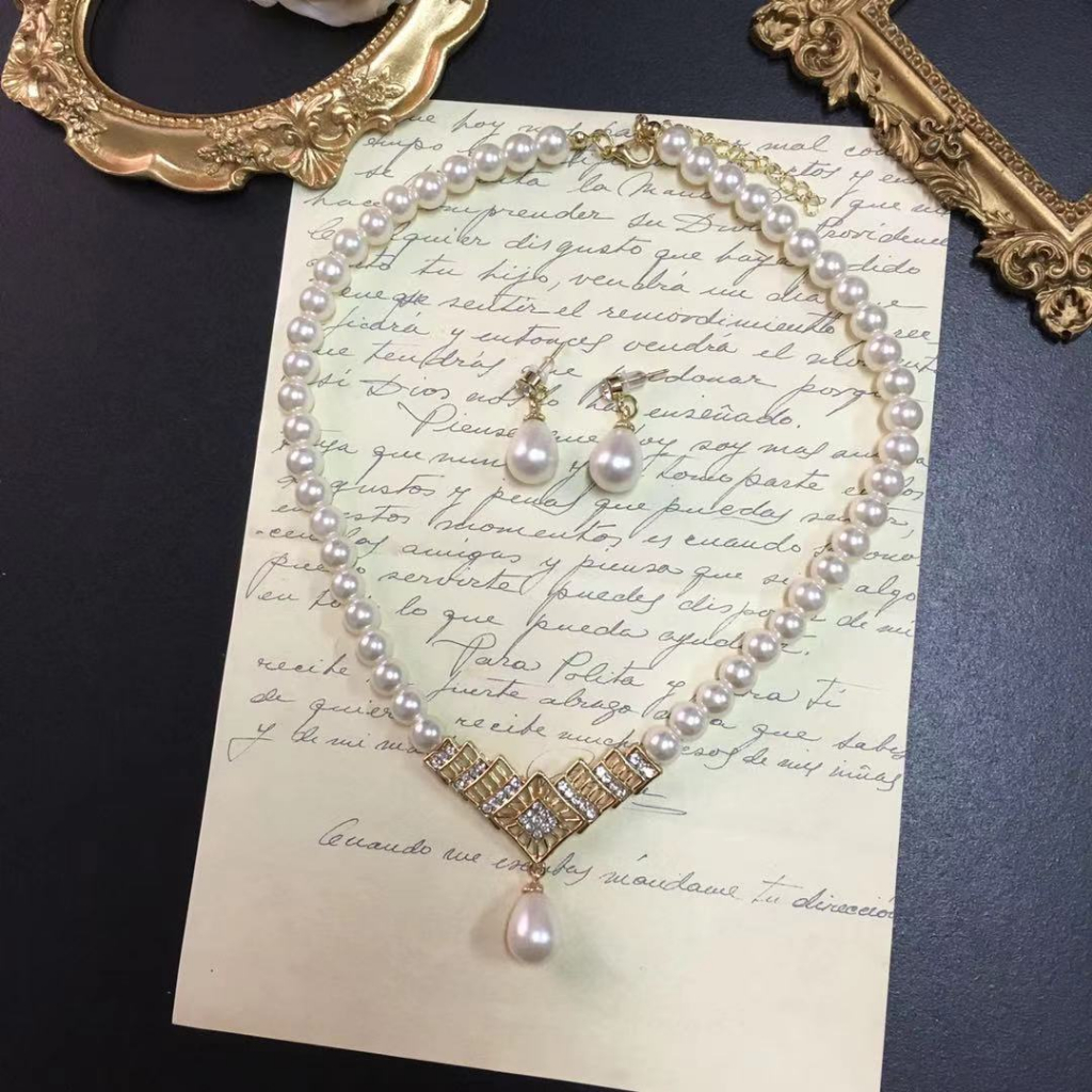 MISS CHIC Pearl Necklace Set Pearl Rhinestone Necklace Earrings Set Jewelry Sets for Women Day Girls Shopee Philippines Very well made.