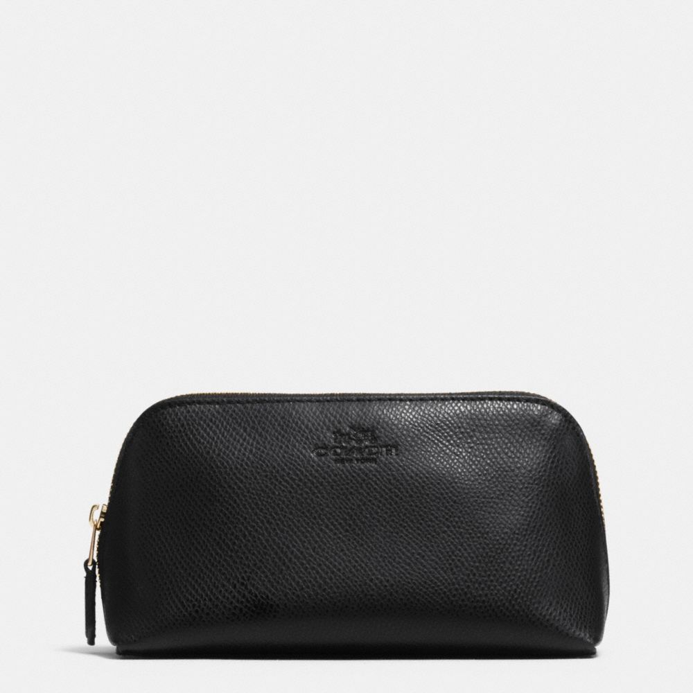 COACH F53386 COSMETIC CASE 17 IN CROSSGRAIN LEATHER LIGHT GOLD BLACK COACH WALLETS WRISTLETS Very well made.