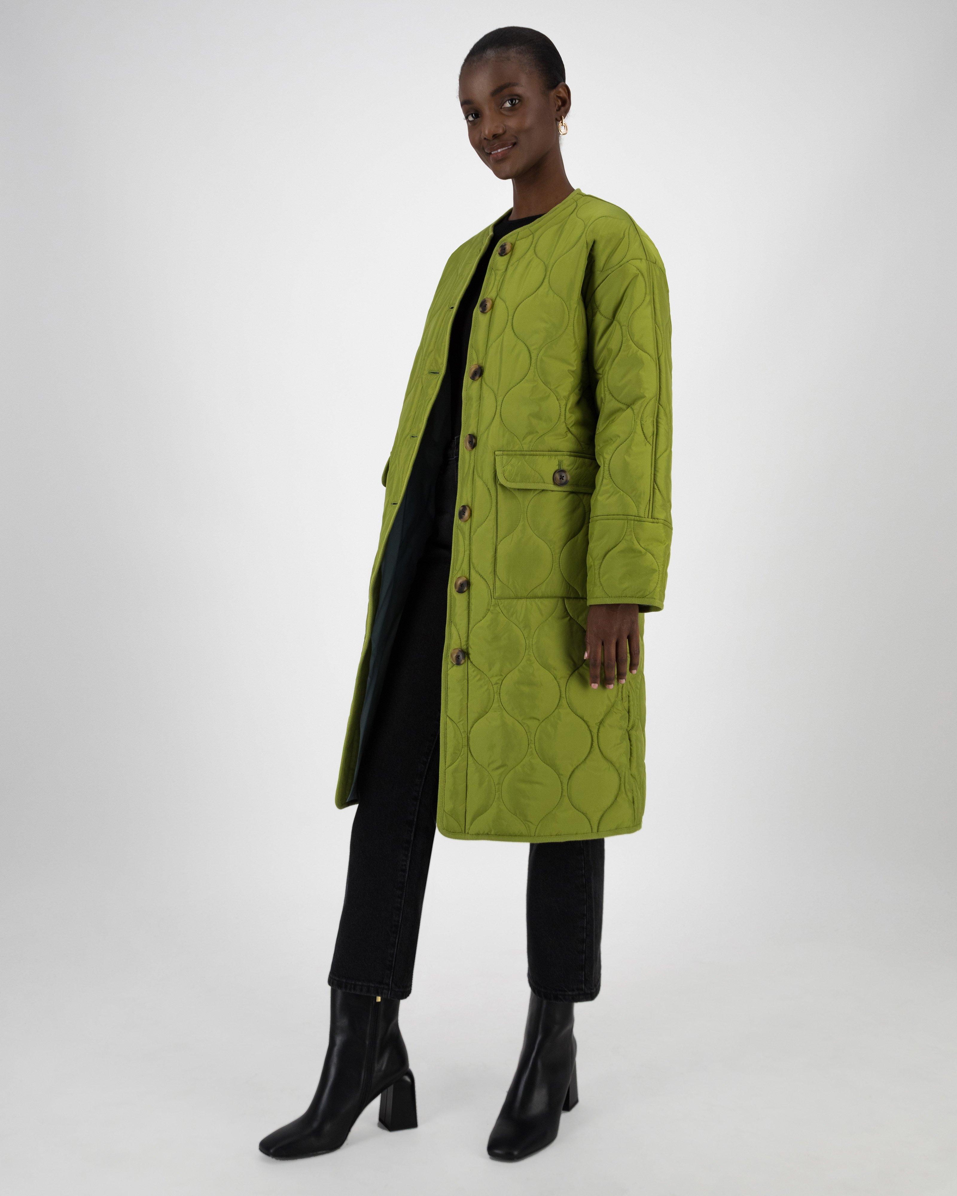 Helene Berman quilted collarless duster coat in green ShopStyle Very well made.