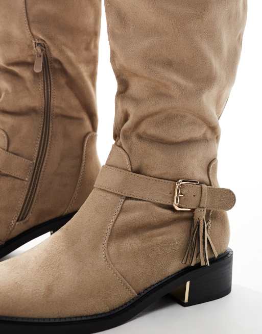 SEQWL Wide Fit over the knee flat boots with tassle in taupe Very well made.