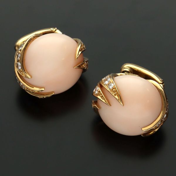 vintage ear studs 14k with red coral Goldberg Very well made.