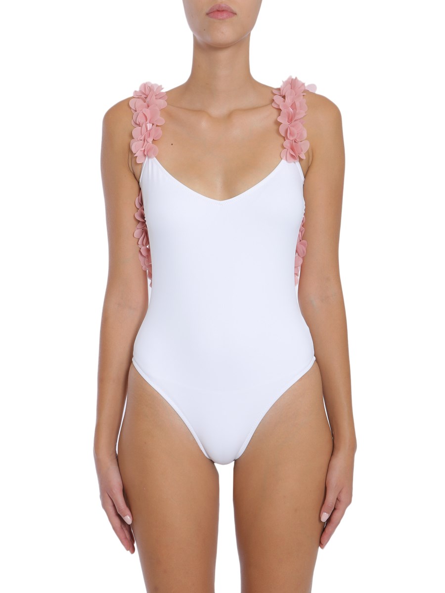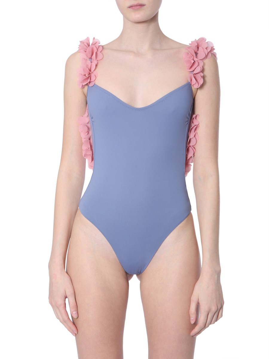 Kaiia Costume da bagno monocromatico con scollo profondo cut out e fiori applicati Very well made.