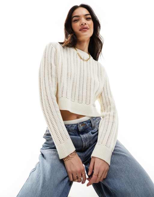 ASOS DESIGN crew neck crop jumper in open stitch in cream Very well made.