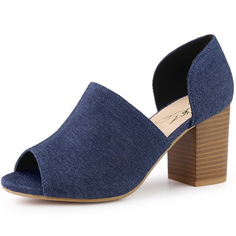 Perphy Denim Open Toe Chunky Heels Slide Sandals Blue 7.5 Very well made.