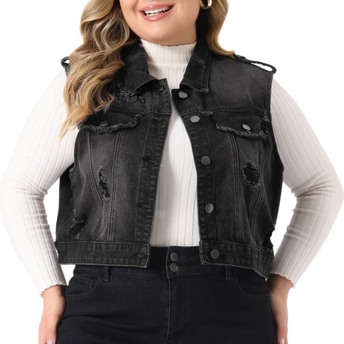 Agnes Orinda Women s Plus size Sleeveless Chest Pockets Button up Denim Vests Black 1x Target Very well made.