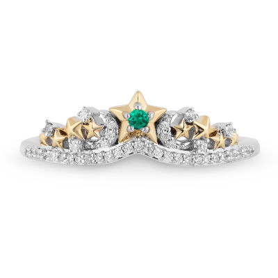 Enchanted Disney Fine Jewelry Lab Created Emerald and 1 10 CT. T.W. Diamond Tinker Bell Ring in 14K Gold Over Silver and Sterling Silver Color Emerald JCPenney Very well made.