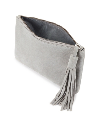 dove grey suede clutch bag Very well made.