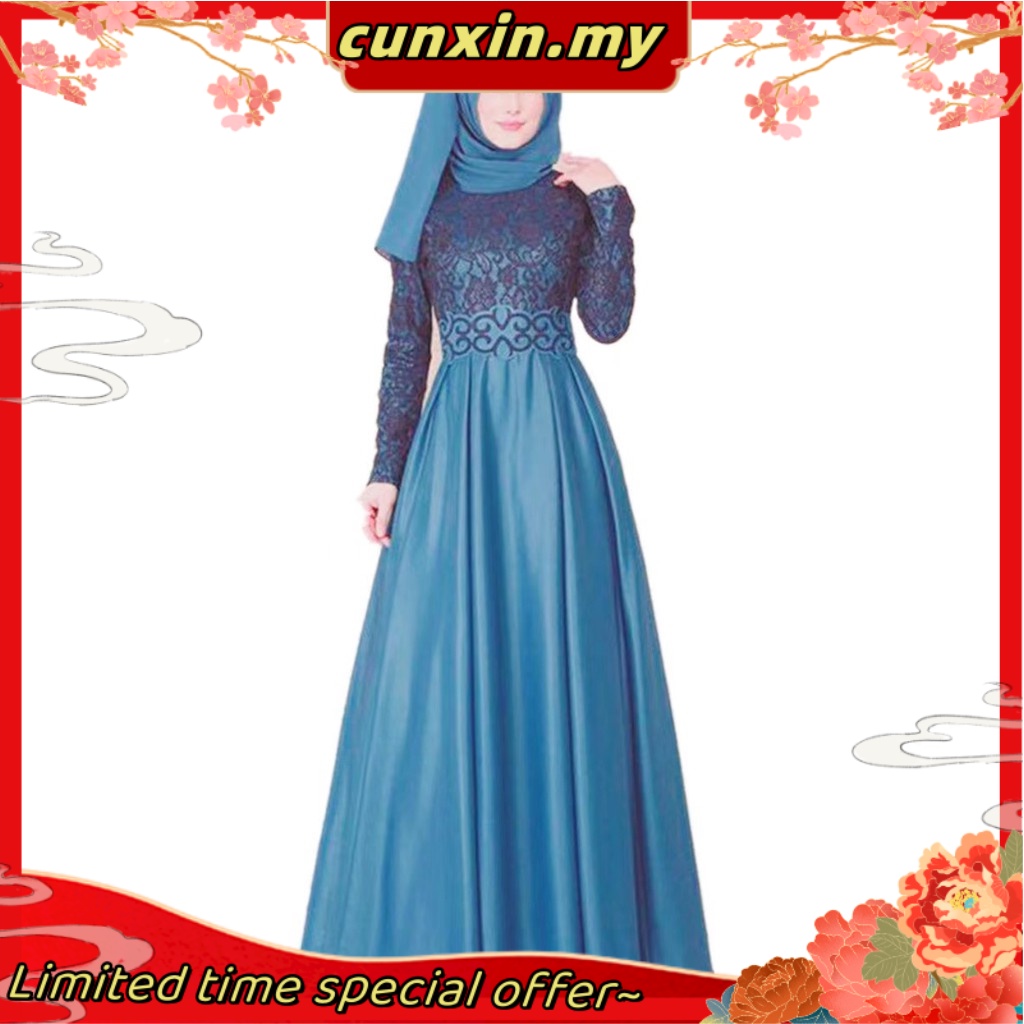 Muslimah Women Plus Size Long Sleeve Lacey Maxi Muslim Dinner Evening Dress Gown dress muslimah without Hijab Shopee Malaysia Very well made.