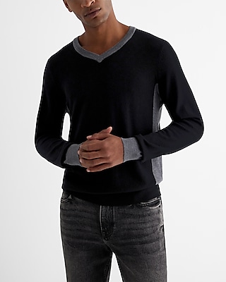 V neck Color Block Merino Wool Sweater Express Very well made.