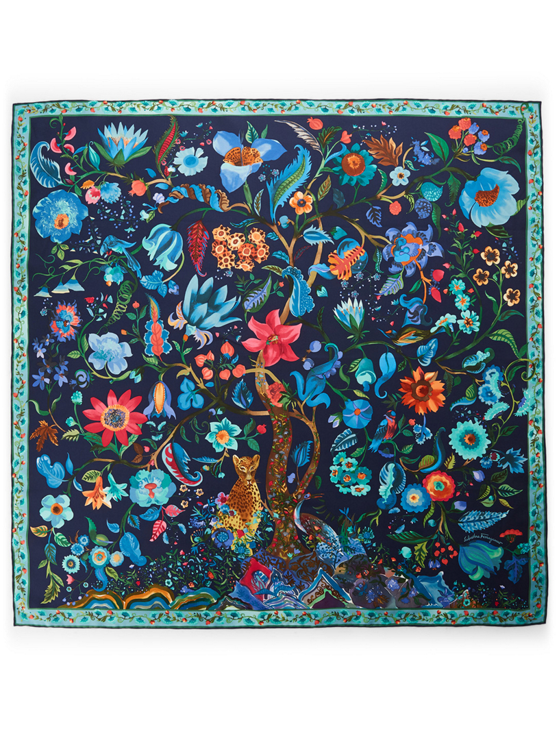 Salvatore Ferragamo Silk Scarf Featuring A Leopard Tiger Fantasy Garden Scene QUIET WEST Very well made.