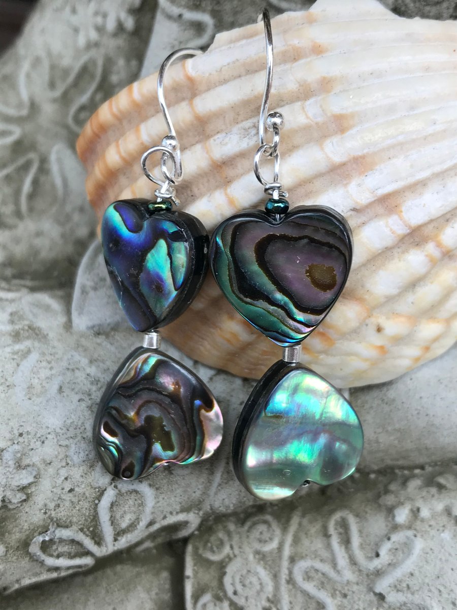 Abalone Shell Drop Earrings Heart Beads Very well made.