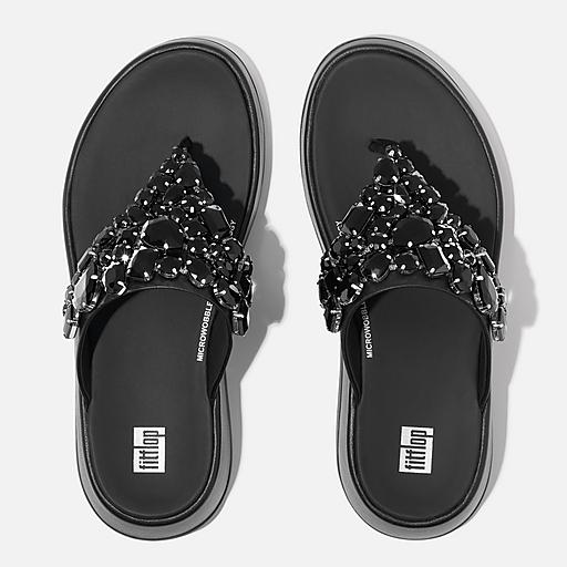 Fitflop Women s F MODE Jewel Deluxe Leather Flatform Toe Post Sandals Black Size CA 5 Very well made.