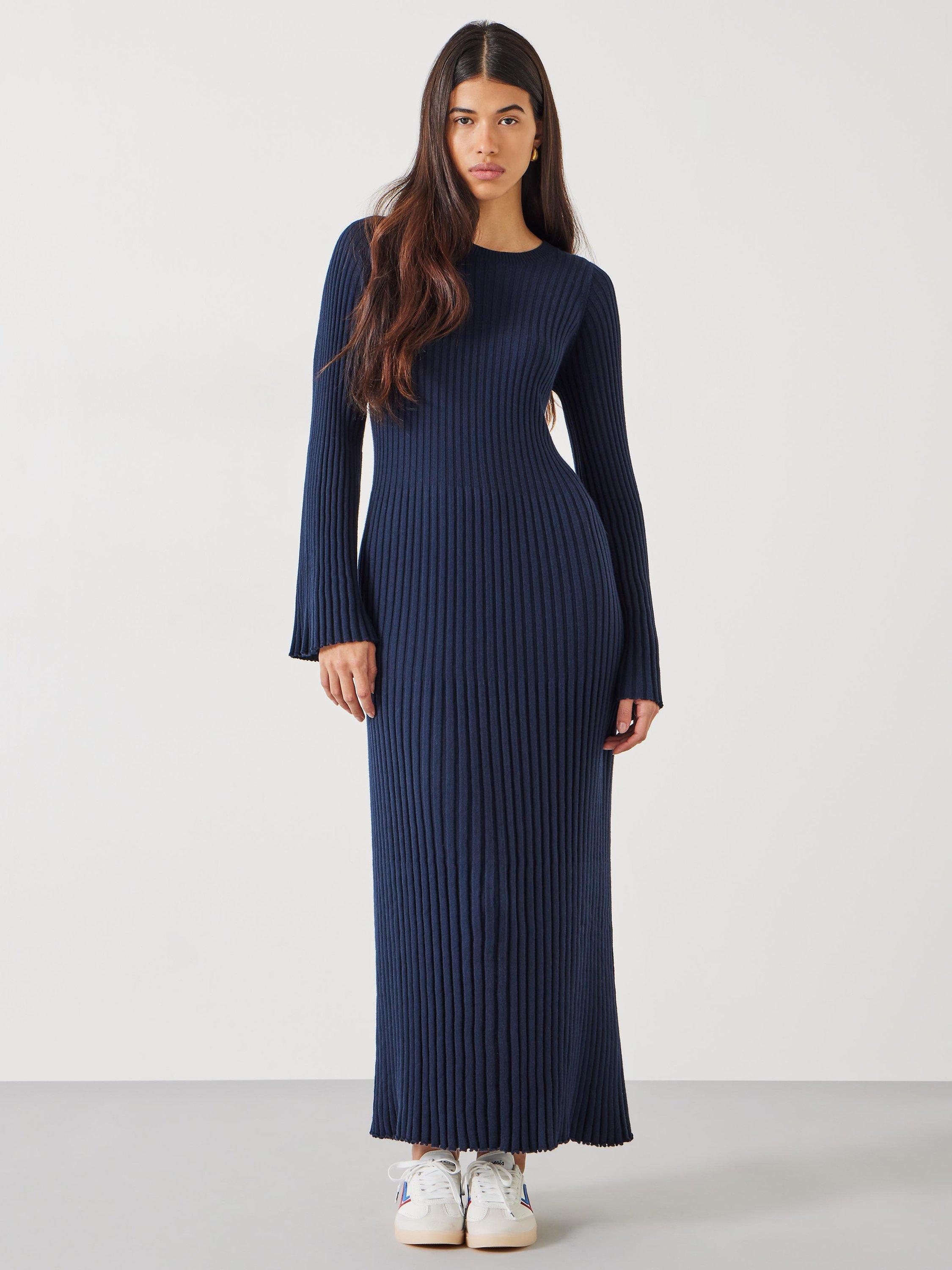 HUSH Penny Crew Neck Ribbed Wool Blend Maxi Dress Midnight Navy Very well made.
