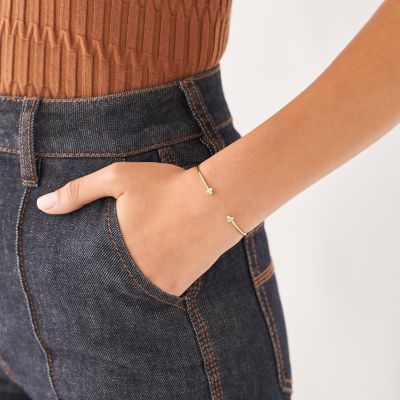 FOSSIL Sadie Trio Glitz Gold Tone Stainless Steel Cuff Bracelet Square One Very well made.
