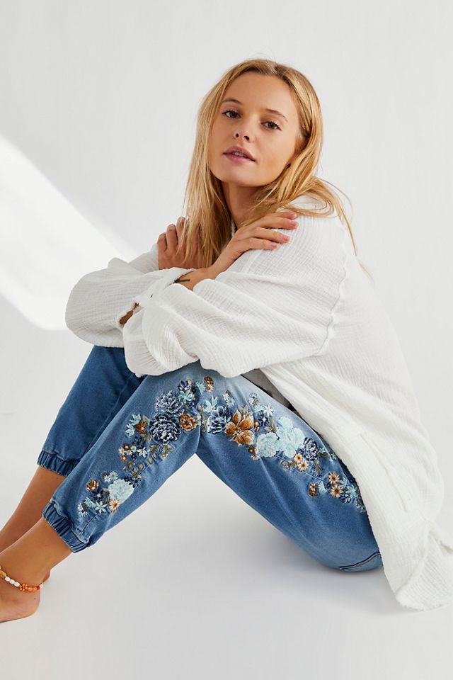 Driftwood Denim Embroidered Joggers Free People Very well made.