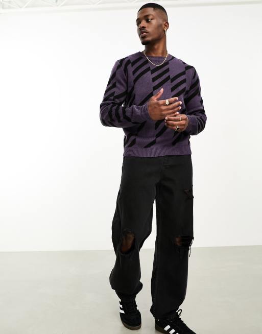 ASOS DESIGN knitted geo print jumper in purple black ASOS Very well made.