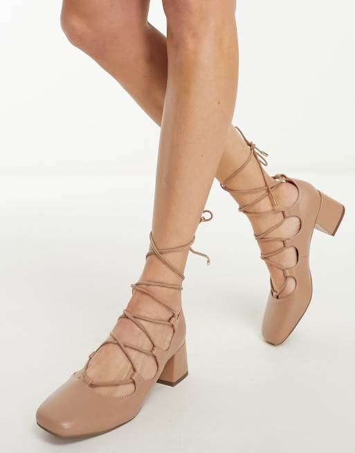 ASOS DESIGN Shay ghillie tie leg block heeled shoes in beige Very well made.