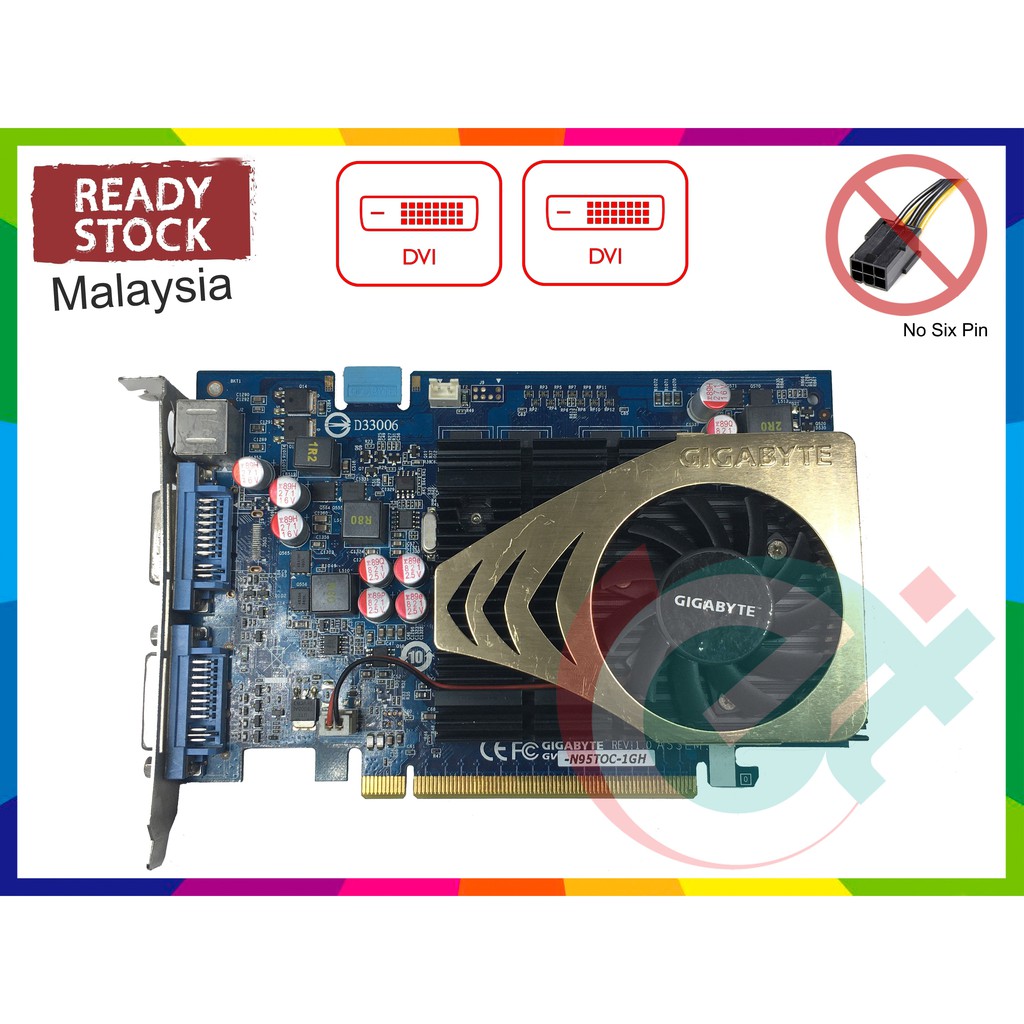 GIGABYTE GeForce 9500GT GV N95TOC 1GH 1GB DDR2 128 bit VGA Graphic Display Card 9500 GT Very well made.