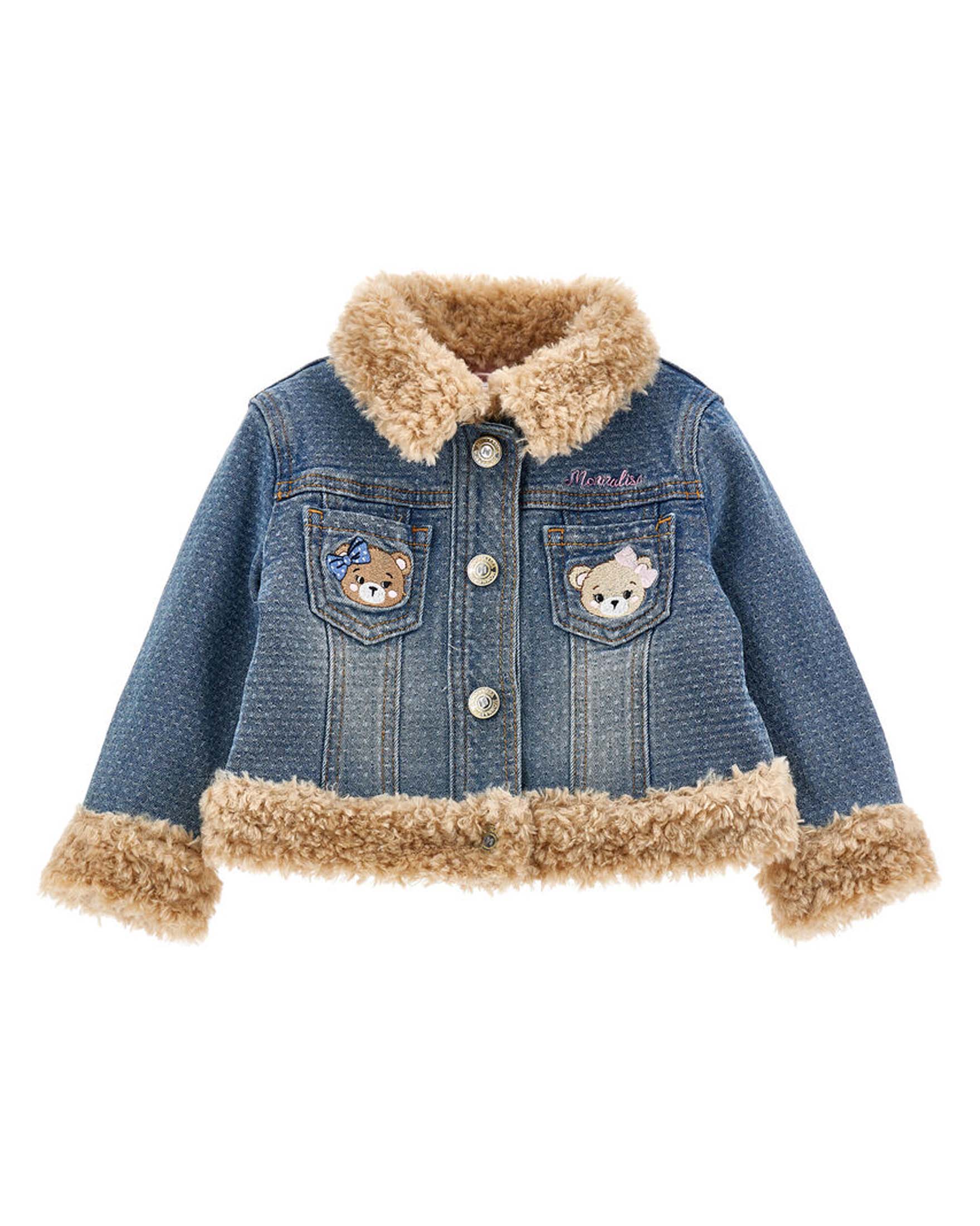 Giacca in denim di cotone stretch a lavaggio medio imbottita con profili teddy beige Very well made.